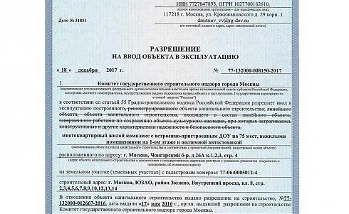 Инвестиционно-девелоперская компания «РГ-Девелопмент», являющаяся автором концепции «родных городов», представила в качестве Застройщика Комплекса АО «ТИМП». Кто бы формально не являлся Застройщиком в «родных» проектах «РГ-Девелопмент», всем им свойственна приличная скорость произведения строительных работ. На Официальном сайте ЖК «Родной Город Каховская», помимо стандартных фотоотчетов, Вы можете наблюдать досконально расписанные временные отсечки всех этапов строительств для каждого из трех корпусов Комплекса. Процесс пошел в конце 2015 года и должен был закончиться во II квартале 2018. Однако, разрешение на ввод в эксплуатацию Застройщик успел получить уже в декабре 2017 года: