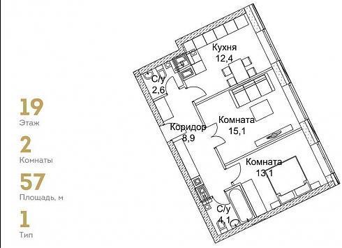 Если двухкомнатная квартира площадью 56,7 кв. смотрится здесь не слишком уместно,