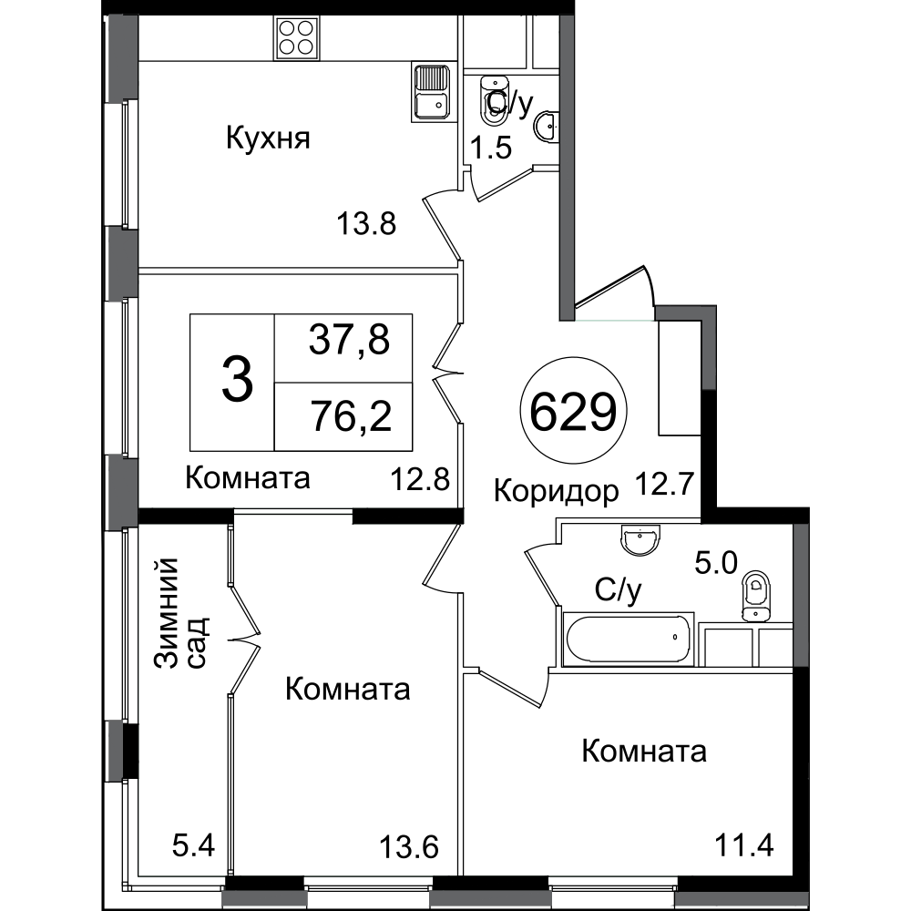 | Апрель 2019 | 76,2-79,9 м2 | 9 907 552 - 12 527 466 ₽ | ~144 742 ₽ | |
