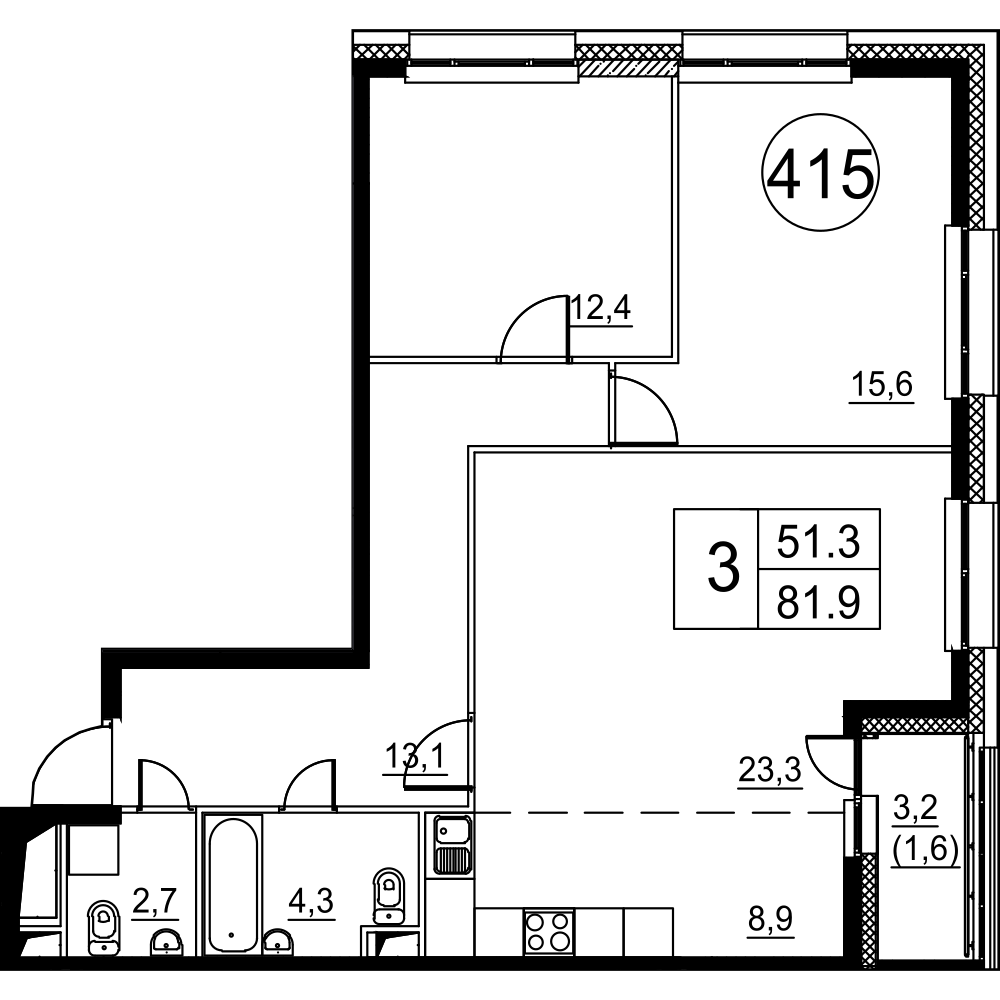 Трехкомнатные квартиры отличаются только ориентацией относительно сторон света, разница в метражах, практически, отсутствует: