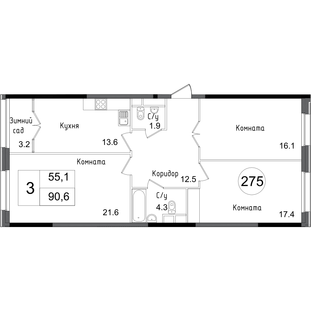 | Февраль 2024 | 58,6-90,7 м2 | 17 366 730 - 25 988 000 ₽ | ~292 937 ₽ | -4.83% |