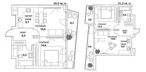 Однокомнатным квартирам, по мнению компании Донстрой, в бизнес-классе делать по большому счету нечего, а потому в ЖК «Событие» стартовым жильем со стартовыми ценами были объявлены евро-двухкомнатные квартиры. Серьезных отличий в их метражах и планировках нет,