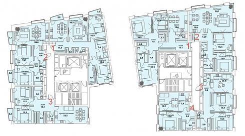 На лестничных клетках, в зависимости от этажа, расположено по три-четыре: