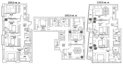 Четырехкомнатные евро-квартиры оснащены сразу тремя санузлами: