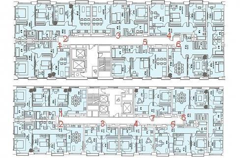 Все различие в планировках пятикомнатных квартир по сути сводится к вариантам конфигурации балконов: