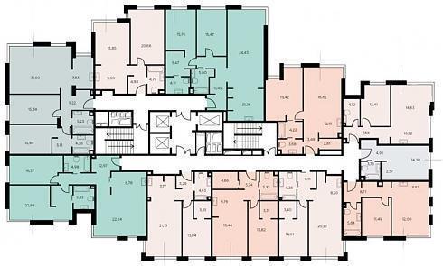 С 4 по 12 этаж количество апартаментов уменьшается до одиннадцати,