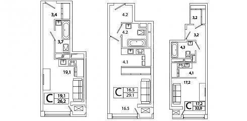 | Ноябрь 2017 | 22,2-32 м2 | 3 973 976 - 5 721 186 ₽ | ~179 540 ₽ | |