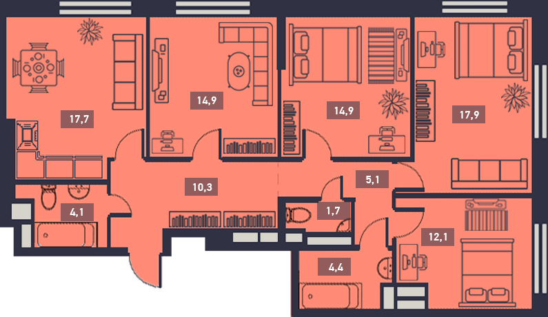 Квартиры в третьей и четвертой секциях сдаются в состоянии свободной планировки.