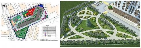 Учитывая конфигурацию здания, пятно застройки будет относительно небольшим, что позволит превратить дворовую территорию участка площадью 13 247 кв. м в настоящий парк:
