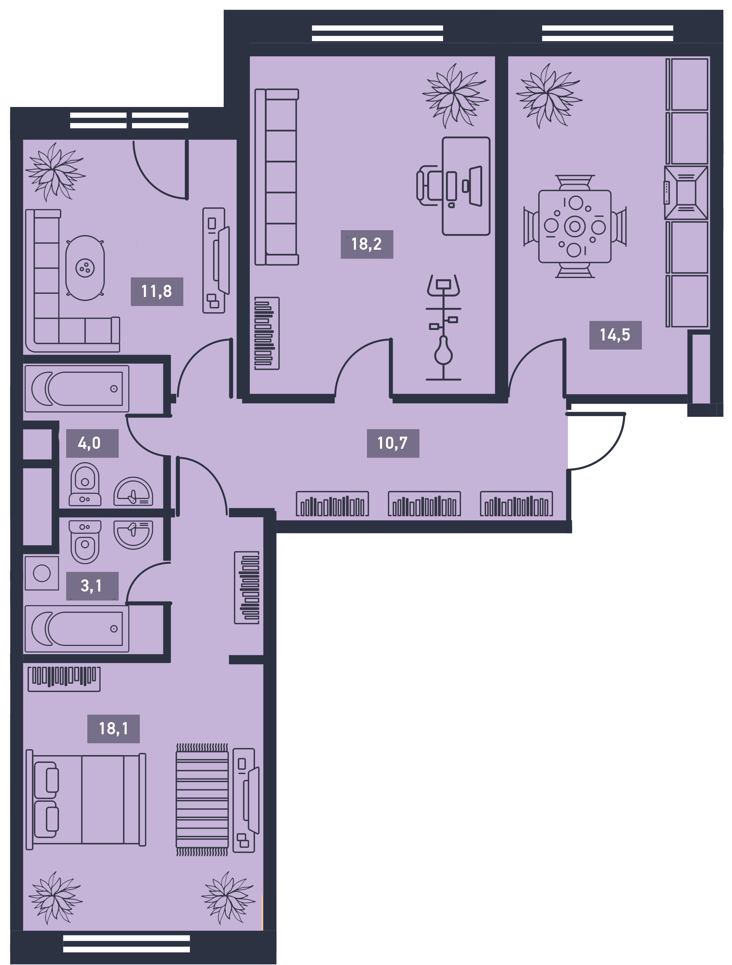 Квартиры в третьей и четвертой секциях сдаются в состоянии свободной планировки.