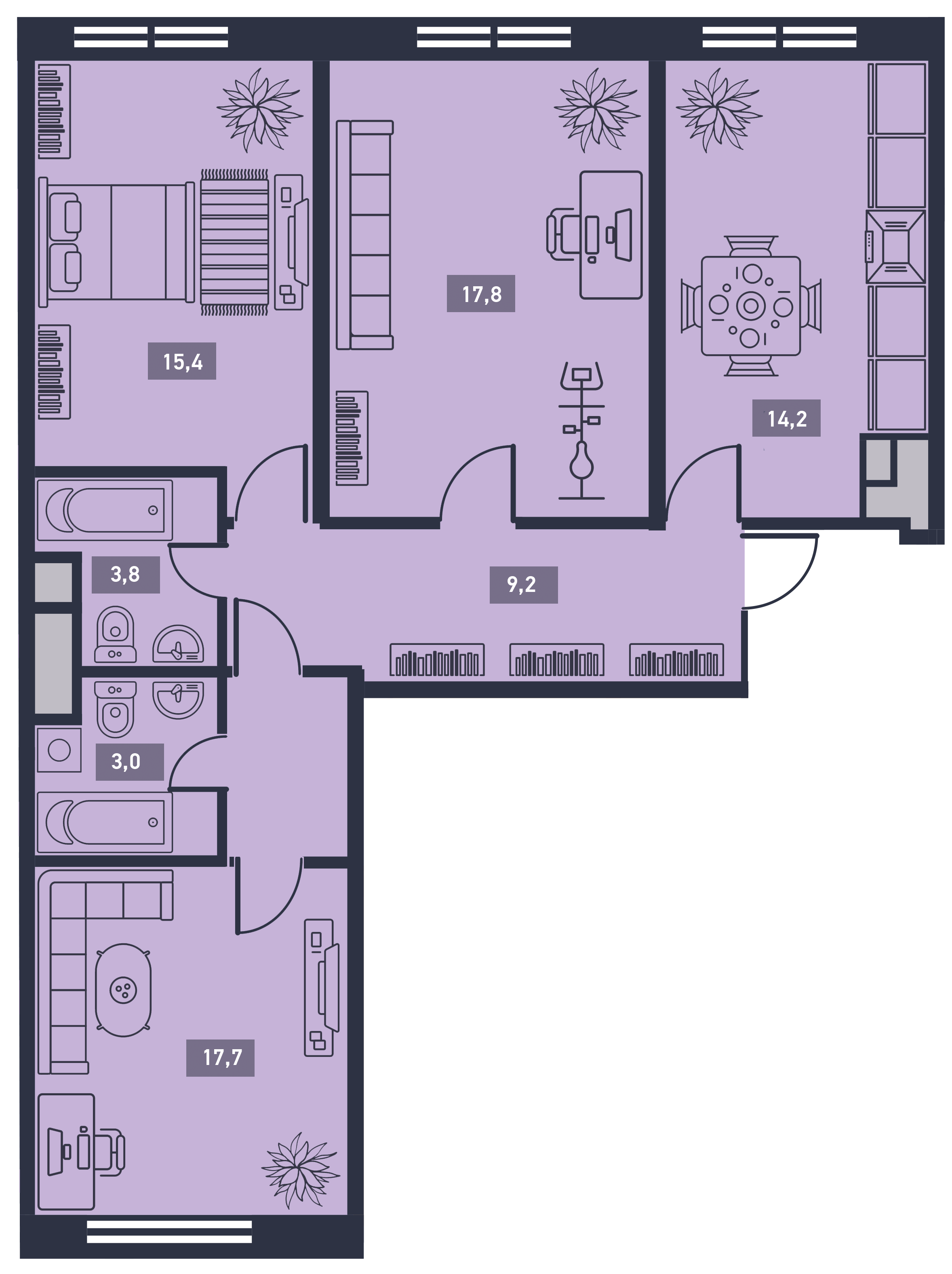Покупатели квартир в московских новостройках уже приучены к тому, что балконы и лоджии переходят в категорию дефицита. В данном комплексе летние площади не положены ни студиям, ни однушкам, но в ряде двух- и трехкомнатных квартир они все же предусмотрены.