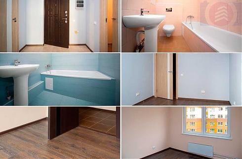 По общему правилу квартиры в ЖК «Тринити» будут передаваться собственникам в свободной планировке без межкомнатных перегородок и с входной дверью «под замену». Исключение есть и это вторая секция, в которой покупатель получит квартиру с выполненным ремонтом. В отделку входят натяжные потолки, плитка в санузлах и кухне, ламинат 32 класса в комнатах, обои под покраску, межкомнатные двери и качественная металлическая дверь, разводка электрики, установка сантехники. Высота потолков в чистоте составит 2,7 м.