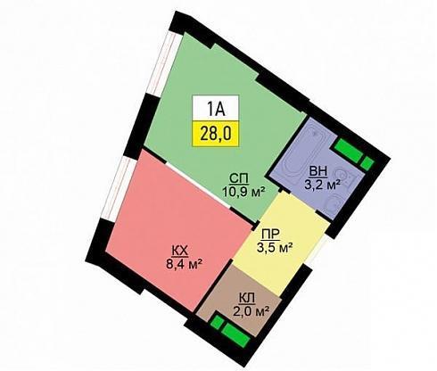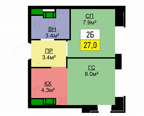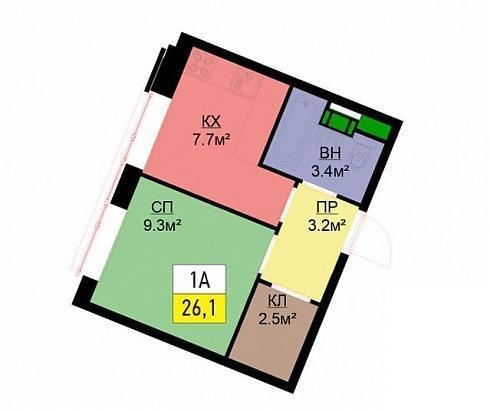 Вообще, при выборе покупателю не следует ориентироваться на колонку «Тип квартиры», обращайте Ваше внимание, прежде всего, на метраж, и старайтесь по возможности игнорировать представленные планировки. Например, такая 27-метровая квартира вряд ли вправе именоваться двухкомнатной: