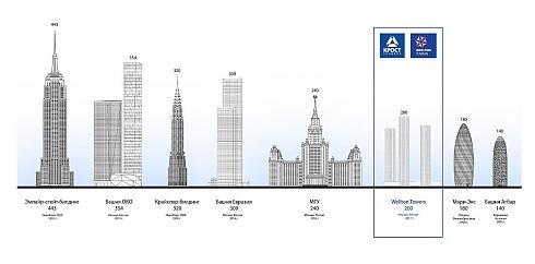 Под данным названием скрываются три секции башен, строящихся на едином трехэтажном стилобате, вполне оправданно претендующих на звание небоскребов, один из которых со своими 58 этажами прямиком попадает в десятку самых высоких жилых зданий в мире.