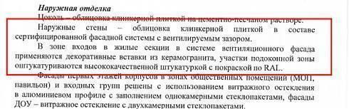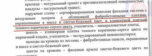 Спустя некоторое время вышло новое заключение экспертизы, где материалы облицовки фасадов уже соответствовали информации указанной на сайте проекта: