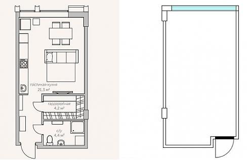а во втором варианте у Вас получится лишь однокомнатная квартира: