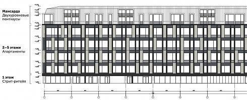 Первый этаж (стрит ритейл) предназначен для размещения магазинов и прочих коммерческих объектов,