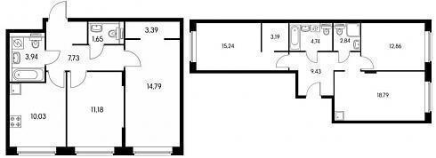 | Октябрь 2018 | 68,56-93,14 м2 | 8 370 560 - 12 905 006 ₽ | ~132 146 ₽ | -2.79% |