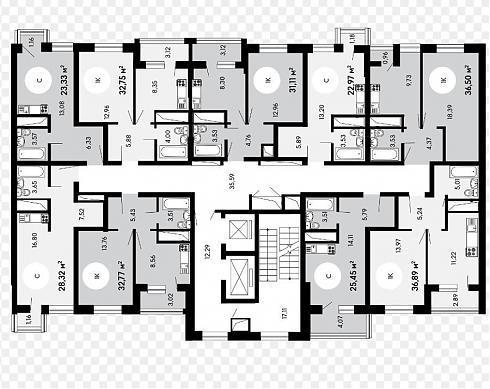 Исключение составляют восьмая и девятая секции, в них располагаются только студии и однокомнатные квартиры, а потому соседей здесь окажется зримо больше: