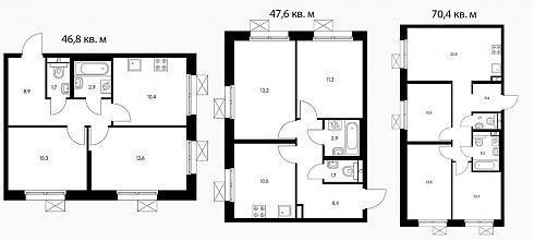 | Август 2019 | 46,8-53,4 м2 | 6 210 360 - 7 144 920 ₽ | ~134 902 ₽ | |