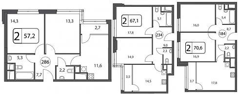 | Ноябрь 2017 | 57,2-71,6 м2 | 14 400 000 - 22 267 600 ₽ | ~286 466 ₽ | |