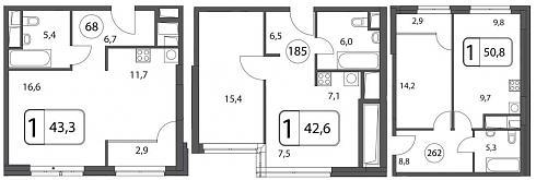 | Сентябрь 2016 | 42,6-52,1 м2 | 11 118 000 - 15 056 900 ₽ | ~278 456 ₽ | |