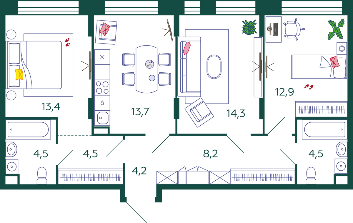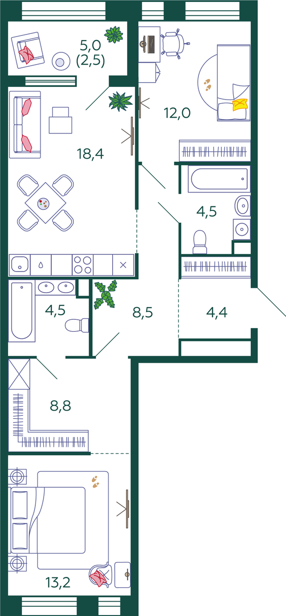 | Декабрь 2022 | 59,6-75,6 м2 | 25 335 976 - 32 884 989 ₽ | ~434 485 ₽ | |