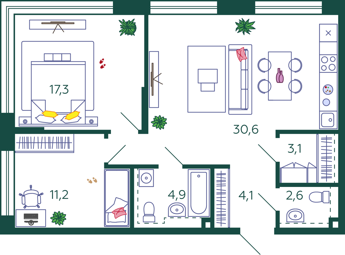 | Июль 2023 | 54,5-77,6 м2 | 32 232 377 - 46 566 005 ₽ | ~601 514 ₽ | 1% |