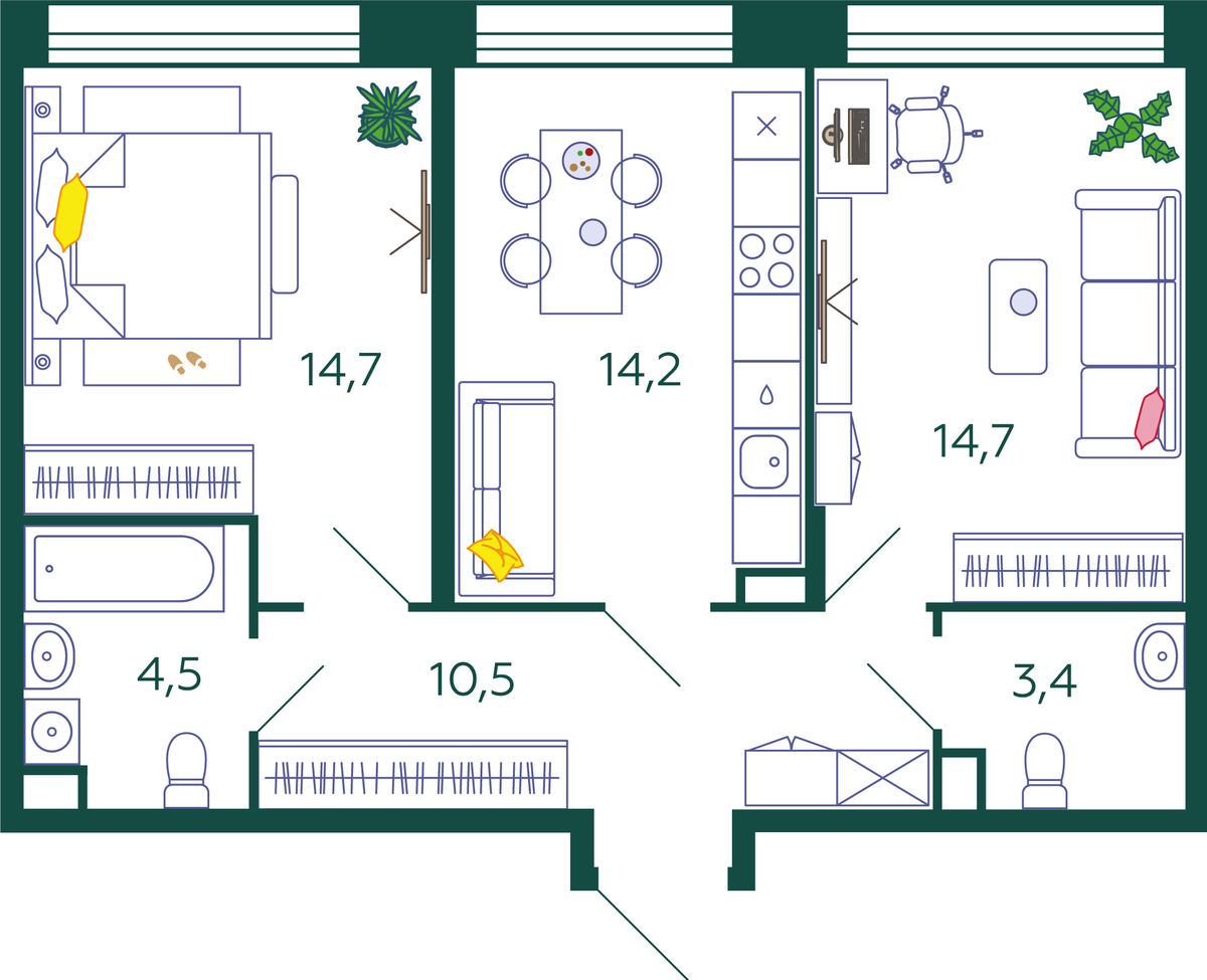 | Июнь 2023 | 42,2-48,5 м2 | 21 162 683 - 29 010 736 ₽ | ~557 482 ₽ | 2.01% |