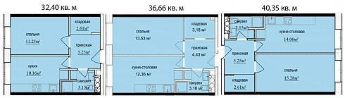 Большинство однокомнатных квартир при различии в размерах обладает схожим функционалом: совмещенный санузел с кладовой напротив через прихожую будут здесь наверняка. По мнению Застройщика, кухня площадью больше 11 квадратных метров уже вправе считаться кухней-столовой: