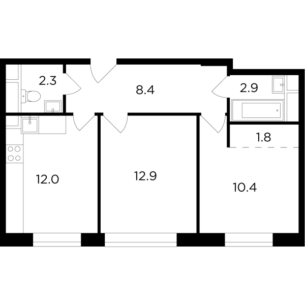 | Декабрь 2017 | 26-29 м2 | 2 431 939 - 2 757 888 ₽ | ~94 360 ₽ |