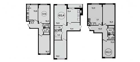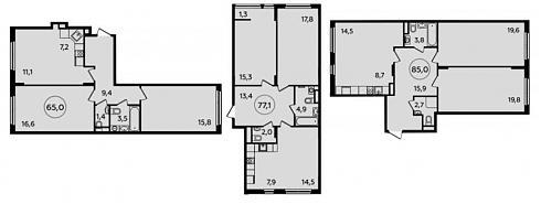 | Июль 2017 | 69,8-95,1 м2 | 5 641 586 - 9 655 886 ₽ | ~93 277 ₽ | |