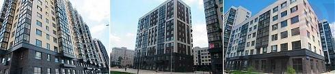 Монолитная технология строительства едина для всех корпусов ЖК, а вот наружные стены тут будут разными и внутри (несущие и не несущие, железобетонные или выполненные из ячеистобетонных блоков), и снаружи (фиброцементные плиты, клинкерная плитка, керамогранитные плиты, вентилируемые и не вентилируемые фасады) – весь спектр перечисленных материалов используется в каждом корпусе Комплекса.