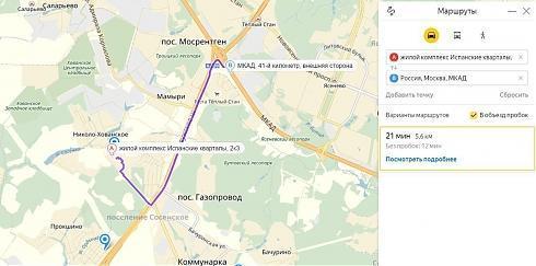 ЖК «Испанские Кварталы» расположен в поселении Сосенское Новомосковского АО. В начале начал, еще весной 2015 года его официальный сайт сходу ошарашивал посетителей недоброй вестью очевидного антирекламного толка – "Комплекс расположен в центре Новой Москвы". Ну, конечно, это никакой ни центр Новой Москвы – от МКАД до границ Калужской области около 70 километров, а вот от строительной площадки «Испанских Кварталов» до кольцевой всего ничего – 3,5 км по Калужскому шоссе. По прошествии пары лет данный слоган с сайта испарился, а транспортная ситуация вокруг Комплекса не ухудшилась, а, напротив, начала меняться в лучшую сторону: