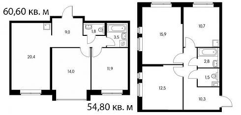 О двухкомнатных квартирах можно говорить уже в прошедшем времени – и линейные и угловые планировки оказались весьма удачными:
