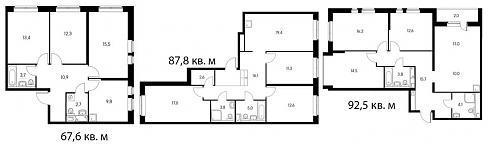 | Июль 2019 | 67,6-95,5 м2 | 7 554 500 - 11 813 350 ₽ | ~119 555 ₽ | -0.93% |