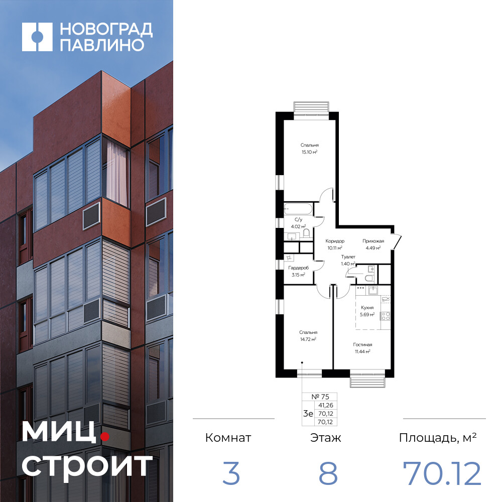 | Ноябрь 2017 | 63,1-79,4 м2 | 4 417 245 - 5 285 100 ₽ | ~68 326 ₽ | 5.38% |