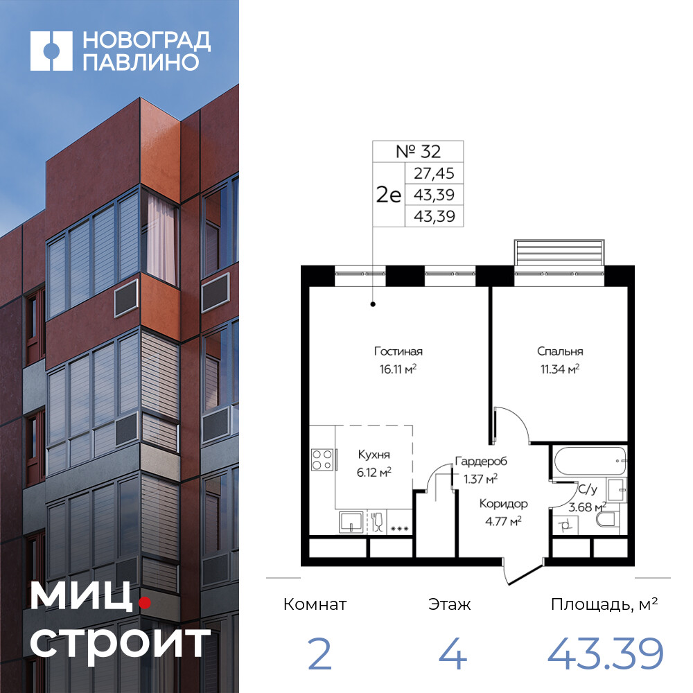 | Февраль 2020 | 32,3-32,3 м2 | 3 469 020 - 3 469 020 ₽ | ~108 407 ₽ | 1.39% |