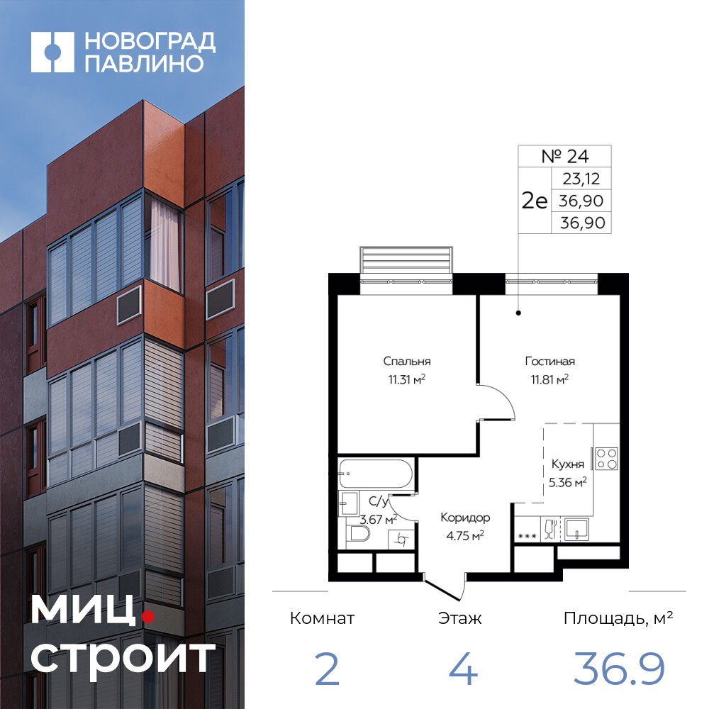 | Март 2024 | 19,4-23,7 м2 | 4 833 425 - 6 155 846 ₽ | ~261 649 ₽ | 10.79% |