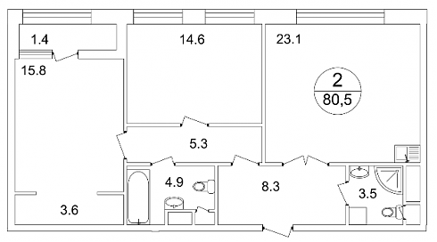 | Январь 2017 | 65,4-80,2 м2 | 8 229 859 - 11 522 630 ₽ | ~136 224 ₽ | |