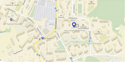На картах Яндекса никакого ЖК «Березовая Роща» Вы не увидите. В широком смысле речь идет о застройке шестого района города Видное, в которой с самого начала принимала активное участие Группа компаний «Ленинвест-Холдинг». С 2006 по 2010 год Компания построила десять жилых корпусов, стоящих на Ольховой и Березовой улице, объединив их под названием ЖК «Березовая Роща», а в 2011 переместилась на участок земли, расположенный на противоположной стороне Завидной улицы и отмеченный на карте уже как «мкр. Березовая Роща».