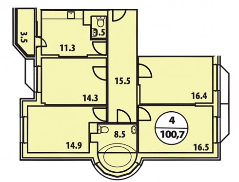 В 100-метровой четырехкомнатной квартире обнаружился санузел площадью 8,5 кв. м с эркером