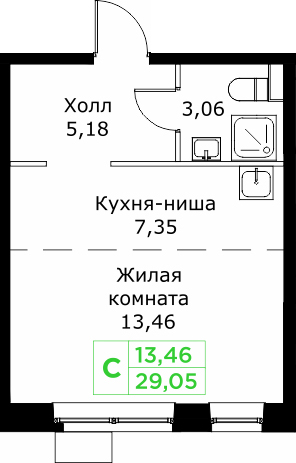 | Сентябрь 2023 | 26-29,2 м2 | 4 600 000 - 8 800 000 ₽ | ~243 636 ₽ | -2.73% |