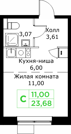 | Октябрь 2023 | 21-30 м2 | 4 800 000 - 7 300 000 ₽ | ~237 255 ₽ | -2.62% |
