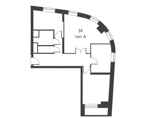 Трехкомнатные. 74-мя метрами удивить сложно, а вот мягко закругленными стенами в гостиной, вполне возможно: