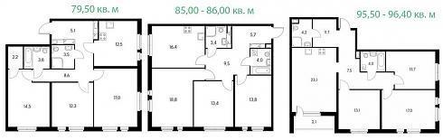 | Сентябрь 2017 | 79,5-96 м2 | 7 290 150 - 10 176 990 ₽ | ~99 812 ₽ | 7.82% |