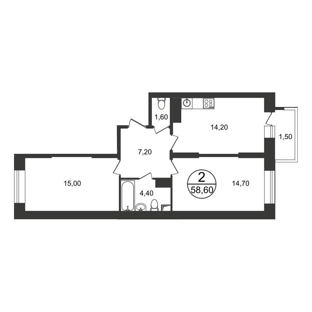 Угловое расположение «евро-двушек» гарантирует обилие света в кухне-гостиной, в линейных вариантах имеются один-два балкона: