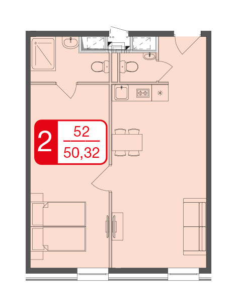 | Февраль 2022 | 48,81-50.93 м2 | 8 297 700 - 8 755 680 ₽ | ~172 378 ₽ | -0.91% |