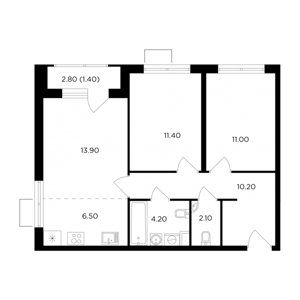 | Декабрь 2022 | 41,9-56,2 м2 | 7 796 940 - 9 679 434 ₽ | ~180 169 ₽ | 5.76% |