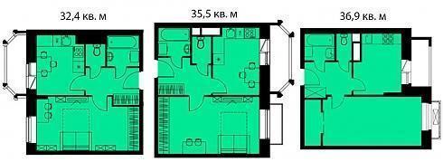 Однокомнатные квартиры обычного формата за редким исключением имеет площадь 30-37 кв. м, облеченных в столь же классическую форму: